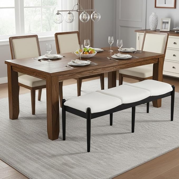 DUOMAY 55'' Modern Ottoman Bench, Chenille Upholstered Entryway Bench Bedroom Bench with Wood Legs, End of Bed Bench for Bedroom, Living Room, Corners, Kitchen, White