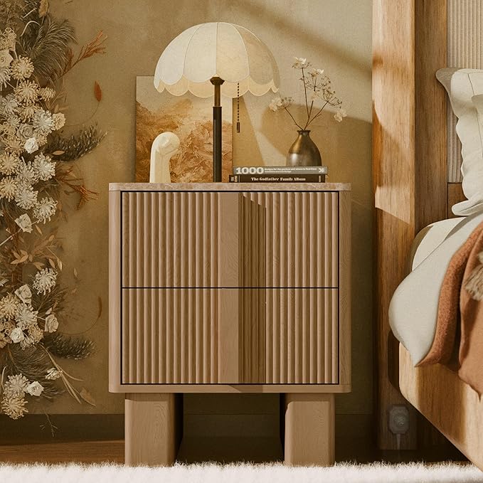 - Versatile Natural Oak Nightstand. More than just a nightstand, this fluted design doubles as a stylish sofa table, entryway organizer, or office companion. Made from natural oak, it's also suitable for various spaces, including playrooms or guest rooms