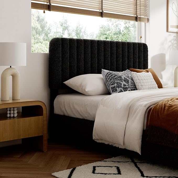 - Adjustable Headboard: Black boucle upholstered bed frame features a plush, soft headboard with 3 adjustable height settings designed to fit mattresses 8", 10", and 12" thick. Easily customize your bed height for optimal comfort and style.