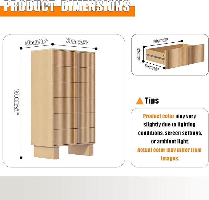 - Spacious 6-Drawer Storage<br> Functioning as both a tall dresser and chest of drawers, 6 drawer dresser for bedroom offers ample space for clothing, bedding, and accessories