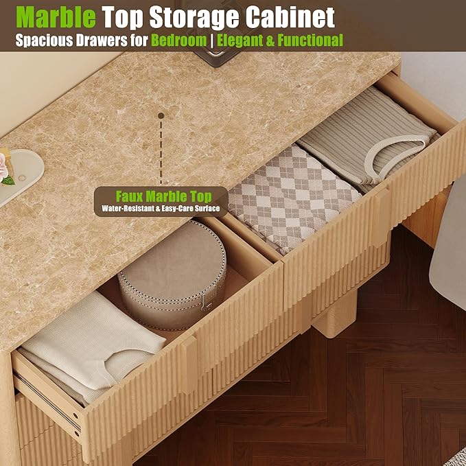 - Sturdy Construction<br>Crafted with wide wooden handles for resilient durability and thickened legs for enhanced stability,this dresser is built to last
