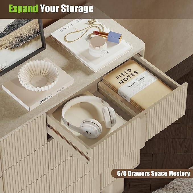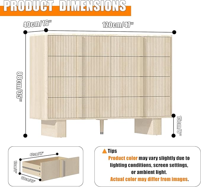 - Safety & Stability<br> Designed for peace of mind, 8 drawer dresser for bedroom combines wall-mountable anti-tip hardware with self-leveling feet that adapt to floor imperfections