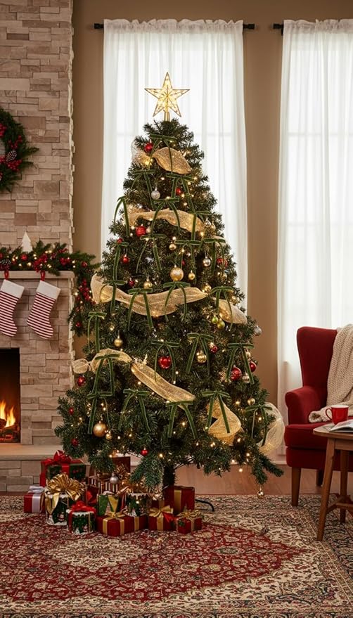- 🎀Twist Tie Bows: Each bow is a finished product, with transparent twist ties on the back to ensure they remain discreet on the Christmas tree. Properly packaged, they can be reused.