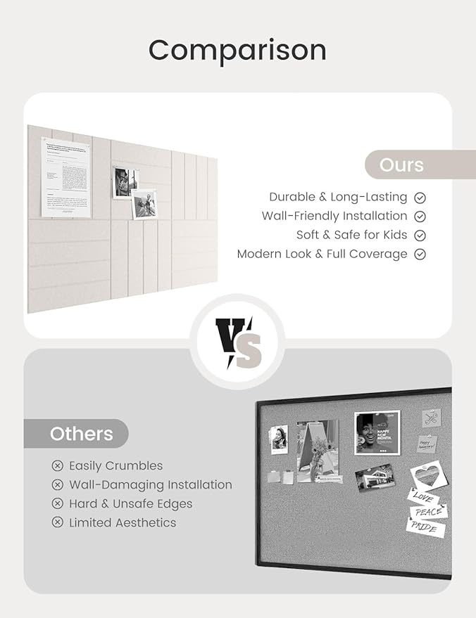 - 【Felt Bulletin Board – 12 Tiles Included】 Includes 12 felt cork boards (each 11.8" x 11.8") with 30 Pushpins that can be freely arranged into a large display board. Perfect for showcasing your schedules, ideas, and creations in home or office settings.