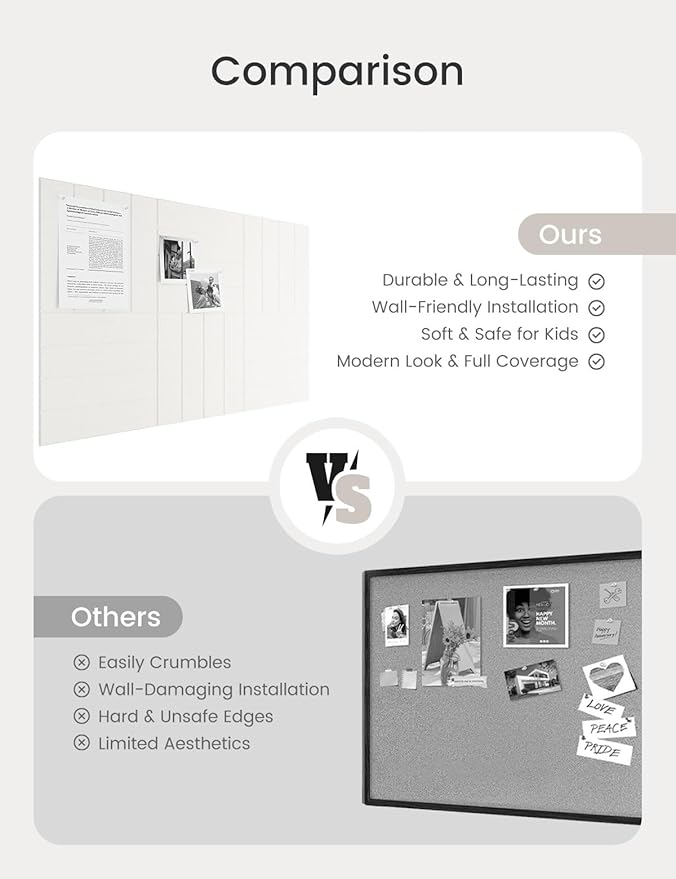 - 【Felt Bulletin Board – 12 Tiles Included】 Includes 12 felt cork boards (each 11.8" x 11.8") with 30 Pushpins that can be freely arranged into a large display board. Perfect for showcasing your schedules, ideas, and creations in home or office settings.