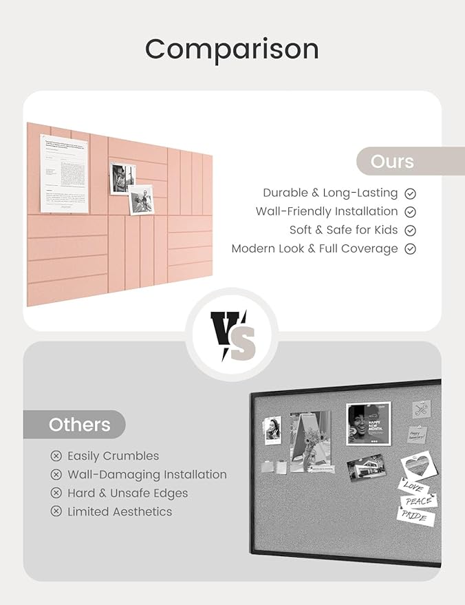 - 【Felt Bulletin Board – 12 Tiles Included】 Includes 12 felt cork boards (each 11.8" x 11.8") with 30 Pushpins that can be freely arranged into a large display board. Perfect for showcasing your schedules, ideas, and creations in home or office settings.