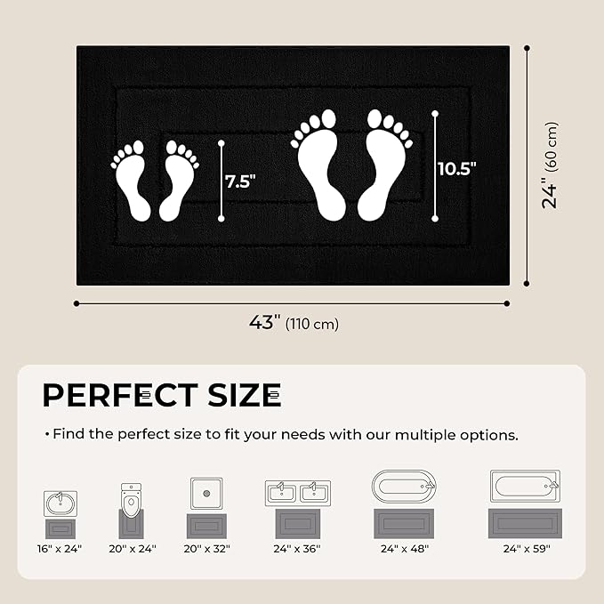 GRANNY SAYS Large Bathroom Rugs Non Slip Washable, 24" x 43", Water Absorbent Bath Mats for Bathroom, Thick Soft Shaggy Bath Rug, Microfiber Shower Room Floor Mat Decor, Black