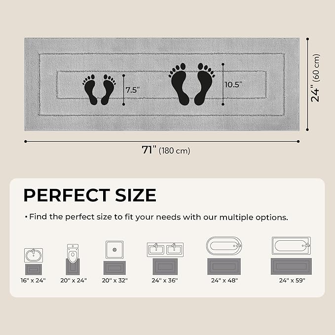 GRANNY SAYS Gray Bathroom Rug Mat, Bath Mats for Bathroom Non-Slip, Super Soft and Water Absorbent, Extra Large Bath Rugs, Microfiber Bath Rugs for Floor, Tub and Shower, 71" x 24"