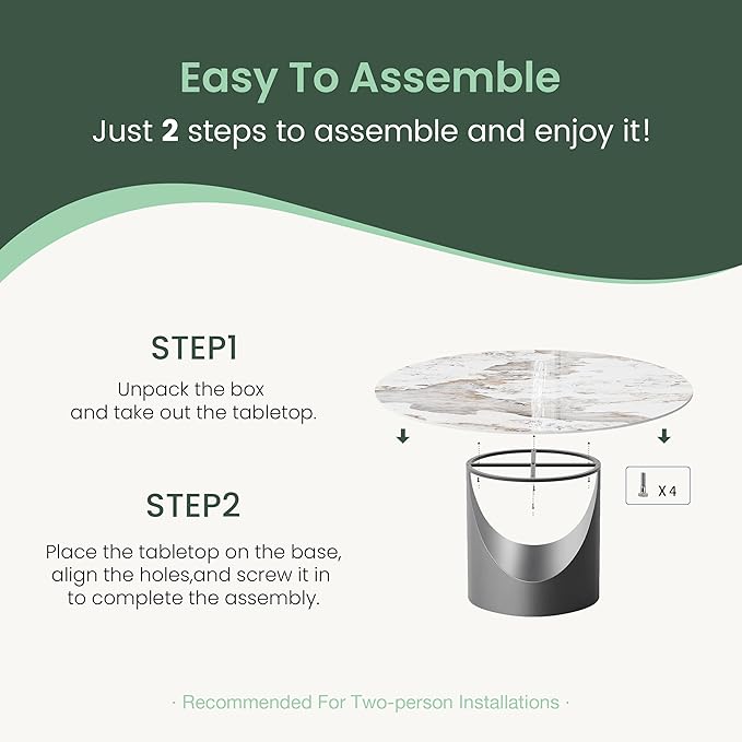 - Easy to Assemble: POVISON round dining table is easy to assemble, please put the sintered stone tabletop on the base and tighten it with screws to complete the installation. It is recommended that two people work together to complete the installation. The round dining table for 6 will be sent in two packages, and the time you receive each package may be different.