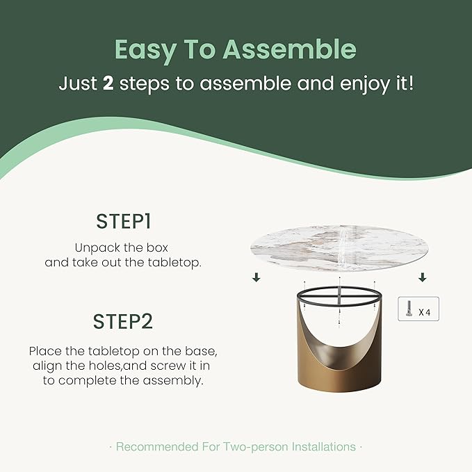 - Easy to Assemble: POVISON round dining table is easy to assemble, please put the sintered stone tabletop on the base and tighten it with screws to complete the installation. It is recommended that two people work together to complete the installation. The round dining table for 4 will be sent in two packages, and the time you receive each package may be different. (Product Weight: 300 LBS, Product Size: 51.18"W x 51.18"D x 29.53"H)