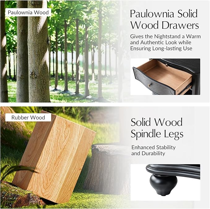 - Wood Construction - Crafted from durable Paulownia wood drawers and rubber wood spindle legs for authentic warmth, enhanced stability, and long-lasting durability.