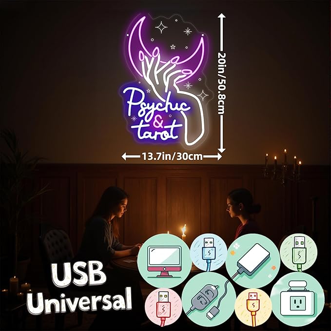 - 【Psychic & Tarot Neon Sign 】: Light Up Your Mystical Journey! Unveil the Magic in Your Space! Whether you’re a professional tarot reader, a mystical enthusiast, or simply love the enchanting vibe, our “Psychic & Tarot” Neon Sign is the perfect blend of mystery and modern style. Designed to create an inviting and magical atmosphere, this sign is ideal for reading rooms, metaphysical shops, events, or home decor. Let its glow attract curiosity, wonder, and a touch of the supernatural to your world!