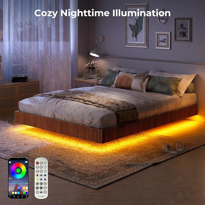- 【Smart LED Lights】 Floating led bed frame set with remote and app control can easily adjust color and brightness to create your perfect bedroom vibe