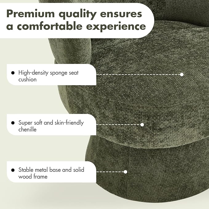 - Comfortable Chenille Upholstery: The modern round accent chair features soft chenille fabric and high-density sponge padding for a comfortable seating experience. Its ergonomic backrest supports the spine and promotes relaxation