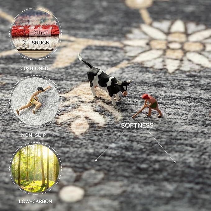 - MULTIPLE SCENARIOS USE: The versatile, low-pile (0.3 inches) vintage area rug is versatile and can enhance the ambiance of your living room, bedroom, nursery, playroom, farmhouse, office or serve as a stylish indoor mat, and serves as a great gift for special occasions such as housewarming, holidays, birthdays, and christmas