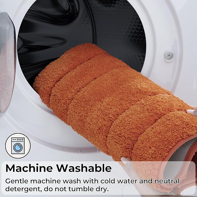 - Machine Washable - Machine wash the bathroom floor mat with cold water and mild detergent. Make sure the dryer is on low heat setting when tumble dry and keep away from chlorine and bleach. After professional testing, the color will remain vibrant after many washes.
