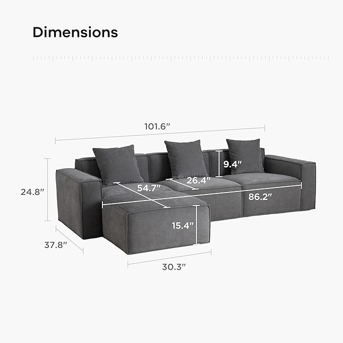 - Designed for living - Revolutionary modular design, not just a L-shape sofa couch, the every seat can be moved and re-matched. Straight cut edges, elegant and welcoming look, plus wide seating, the luxury sofa set provides a place to relax.