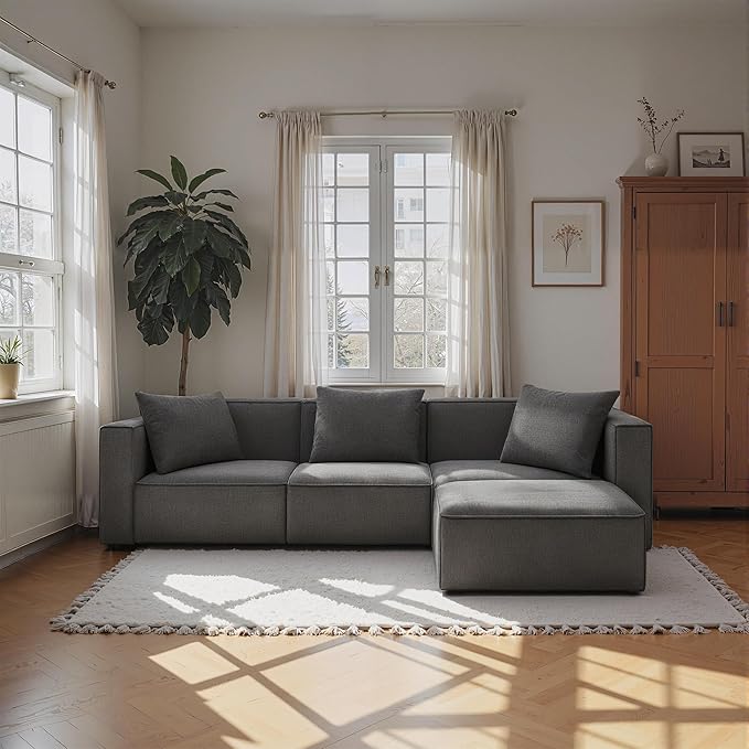 - Minimalist modular sectional sofa set - The modern modular L-shape sofa couch features a simple style, focusing more on clean lines and premium linen-like fabric to bring a timeless and chic to your home, sure make your living room the center of attention.