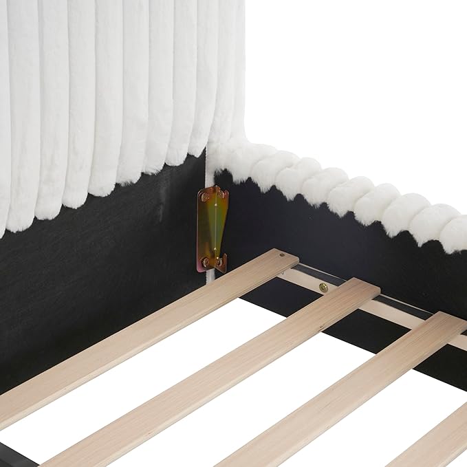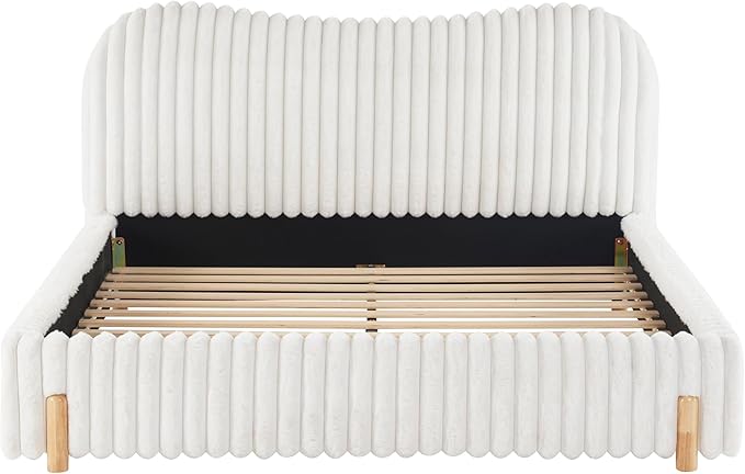 - Modern Minimalist Aesthetic:With its clean vertical lines and sleek rubber wood legs, this upholstered bed frame blends seamlessly into contemporary, Scandinavian, or boho-chic bedrooms. The neutral white finish and fluffy boucle texture elevate any decor