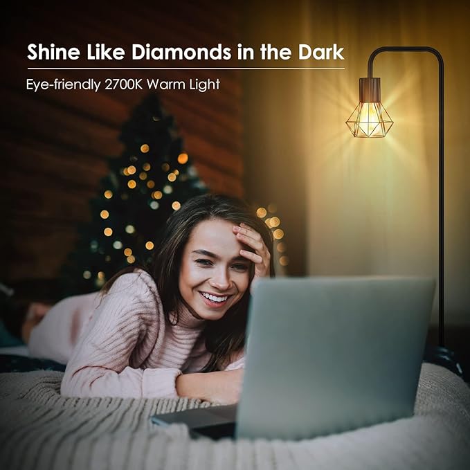 - You Decide the Style; Are you looking for a black floor lamp with a unique design and also a 100% match with your home style; BoostArea 6W diamond industrial floor lamp is your ideal answer; This diamond shaped standing lamp comes with a built-in E26 Standard Base Socket (6w LED Bulb Included), which gives you much more space to design it according to your home style and your own taste; When using different shapes and colors of bulbs, the lamp gives various looks; Tips: Only for E26 bulbs