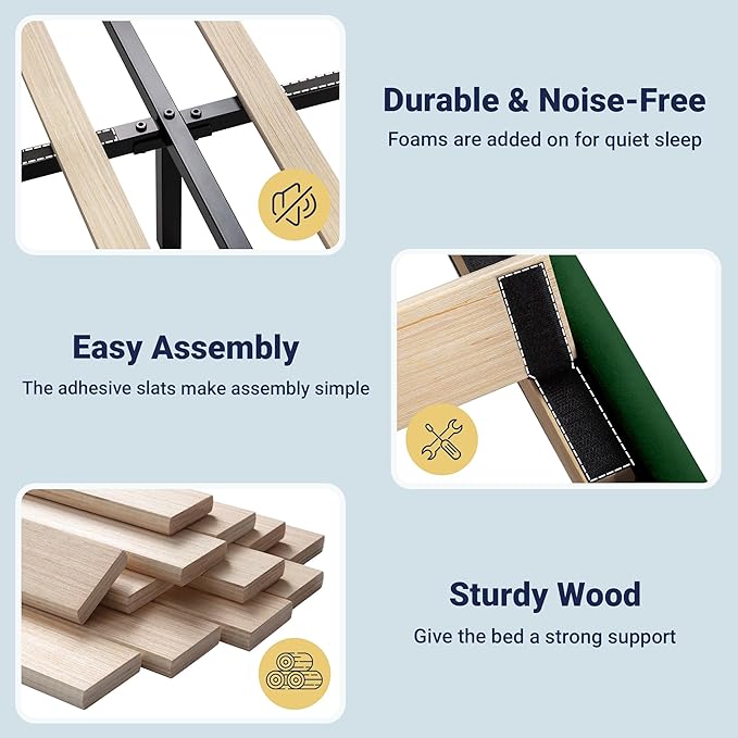 - Luxe High Footboard: This velvet bed features a tall headboard and matching footboard for comfortable lounging and added safety. Its sturdy frame securely holds your mattress in place