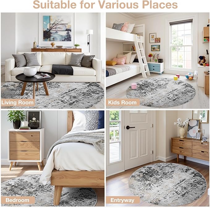 - Elegant Design: Featuring a soft-toned abstract pattern, this round washable rug adds sophistication to any room. Its timeless design complements various interior styles, blending seamlessly with your decor