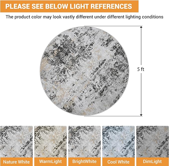- Pet & Kid Friendly: Safe and durable, this round rugs 5ft withstands heavy foot traffic and rough play while staying soft. It's ideal for families, offering a cozy, long-lasting space for kids and pets