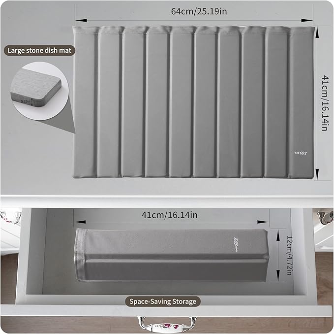 - 【QUICK DRYING & SUPER ABSORBENT】Made from diatomaceous earth, this stone drying mat features millions of micropores that rapidly. Safe for all ages and free from harmful chemicals, it keeps your sink area clean, dry, and protected from water stains or damage.