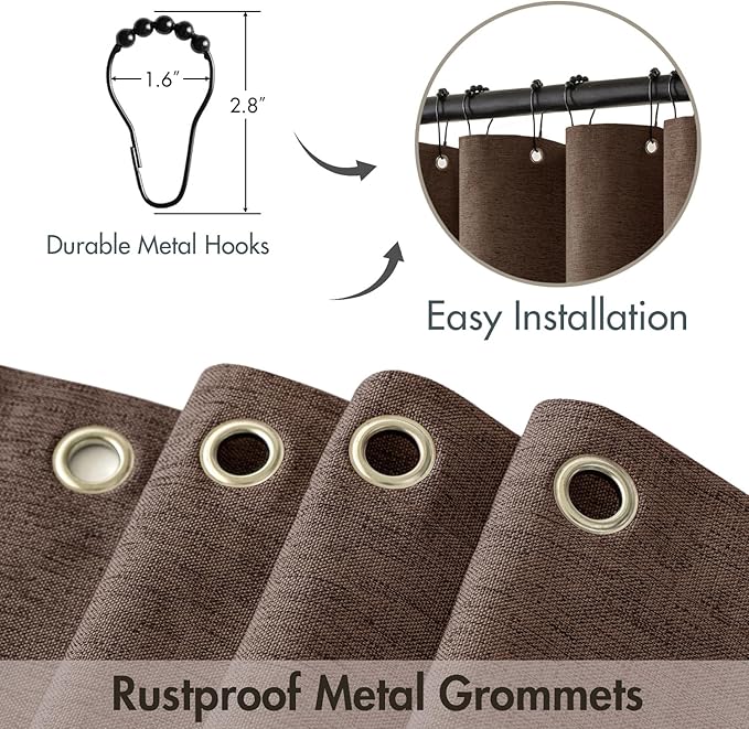 - Package Includes: Comes with 1 faux linen shower curtain featuring reinforced metal holes and 12 bonus metal hooks,rust resistant and easy to slide.You will enjoy the added convenience of these bonus hooks while saving on the cost and effort.