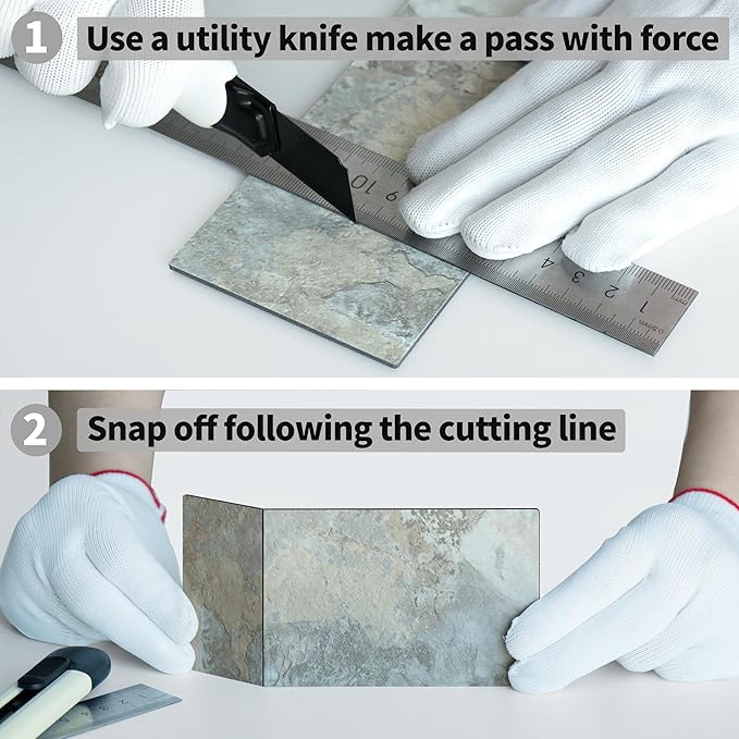 - Made of PVC composite laminate, realistic textured surface, anti-scratch, high impact, color fadeless, easy to cut with the utility knife.