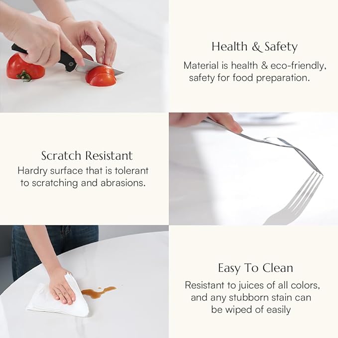 - Smooth Edge Design: The dining tabletop pattern is matte black marble. Thickness of the tabletop is 12mm, and the edge of the tabletop adopts a humanized smooth edge design to prevent collision, making your family and pets feel more at ease at home. The size of this round dining table is 60 inches, table is recommended for 6-8 people