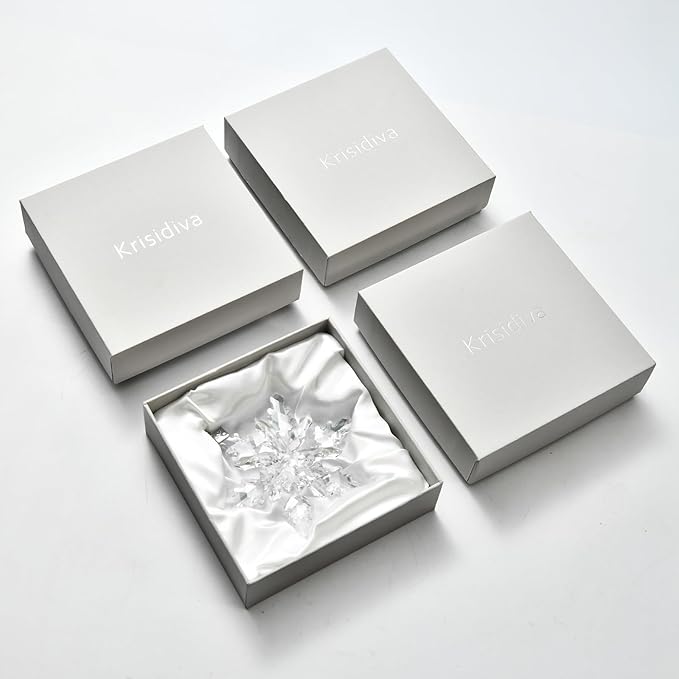 - The product includes: (1) Krisidiva 2025 snowflake jewelry, 2025 version, silver/transparent/color crystal, engraved with labels, gifts for four seasons, size: 4.41 * 3.54 inches, box with Krisidiva logo, ribbon (2), crystal chain (1)