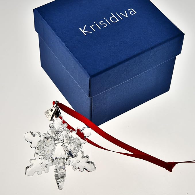 - The product includes: (1) Krisidiva 2025 snowflake jewelry, 2025 version, silver/transparent/color crystal, engraved with labels, gifts for four seasons, size: 2.95 * 3.34 inches, box with Krisidiva logo, ribbon (2), crystal chain (1)