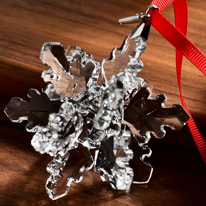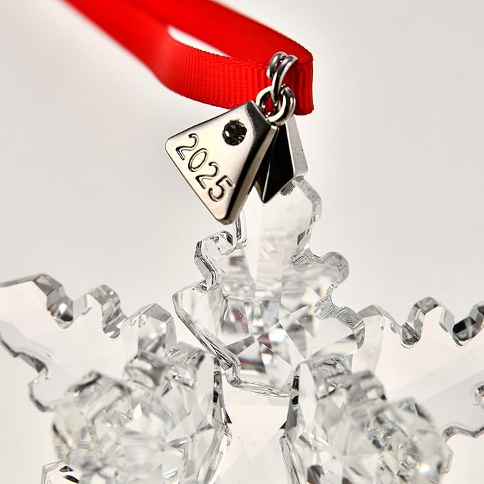 - estivals and cheerfulness: a perfect snowflake, with perfect snowflake effect and 240 shiny faces, strung on a blue/red ribbon, with 2025 commemorative silver color decorative symbol
