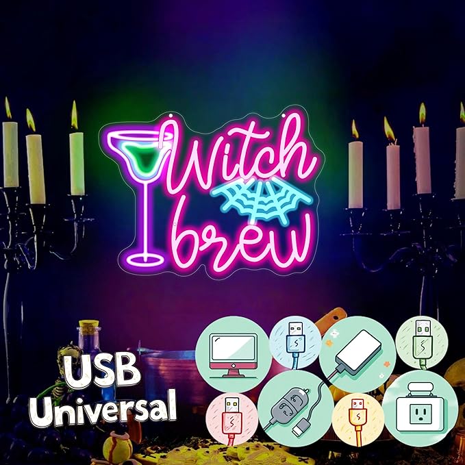 - 【Witch Brew Neon Sign】:Spellbinding LED Magic for Modern Witches & Halloween Lovers!Concoct the perfect atmosphere with this enchanting Witch Brew neon sign—a mesmerizing blend of mystical charm and eerie glow that’s perfect for Halloween, mystical spaces, or anyone who loves a touch of magic in their decor.