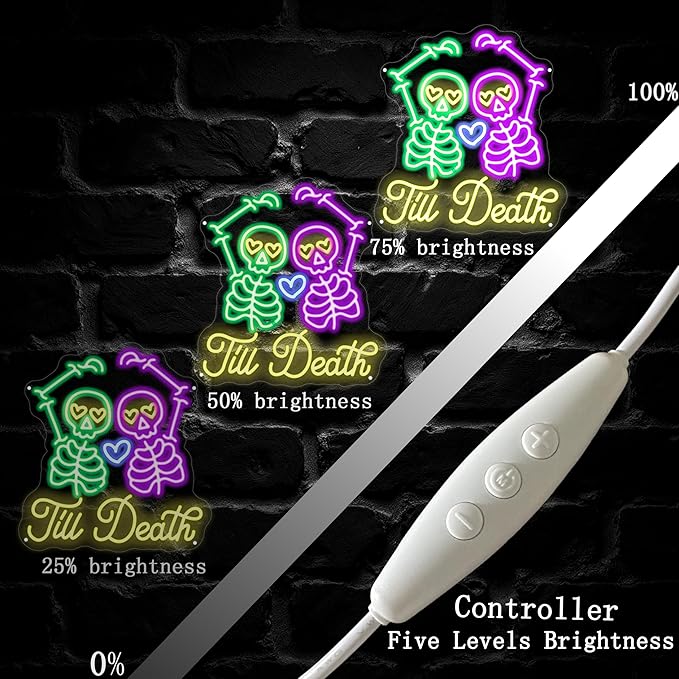 - 【Light Up Your Legacy 】:Embrace the eternal cool of the skull symbol with this electrifying "Skull 'Til Death" Neon Sign. Perfect for creating a standout vibe in your space, this sign combines the timeless motif of the skull—a symbol of both mortality and fearless courage—with a modern, handcrafted glow. It’s a declaration of loyalty to your style, 'til the very end.