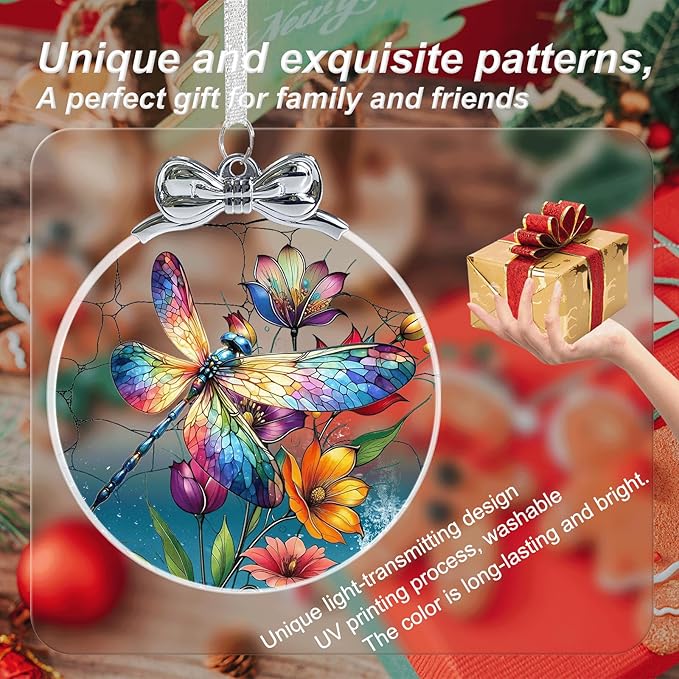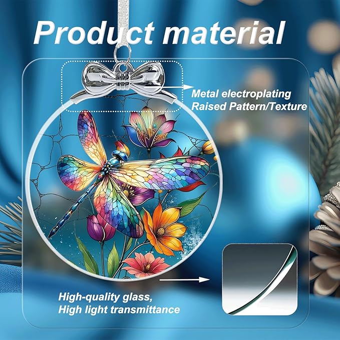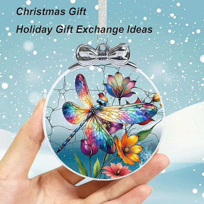 Dragonfly Christmas Ornament Crystal Glass- Hanging Ornaments for Christmas Tree, Christmas Ornaments Xmas Decorations, Holiday Keepsake Present Exchange Ideas