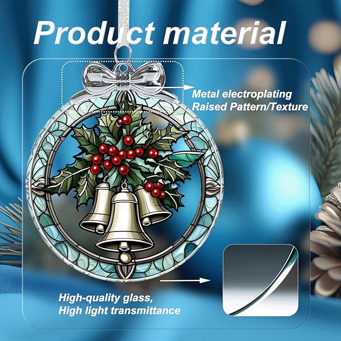 - ❤️【Vibrant Colors, Not Dull】The artistic collision of colored glass style and bright metal style has added natural vitality and warmth to this Christmas. These glass hanging ornaments are printed with various brightly colored patterns. Through the transparency of the glass and the refraction of light, the patterns are endowed with a sense of vitality and liveliness.