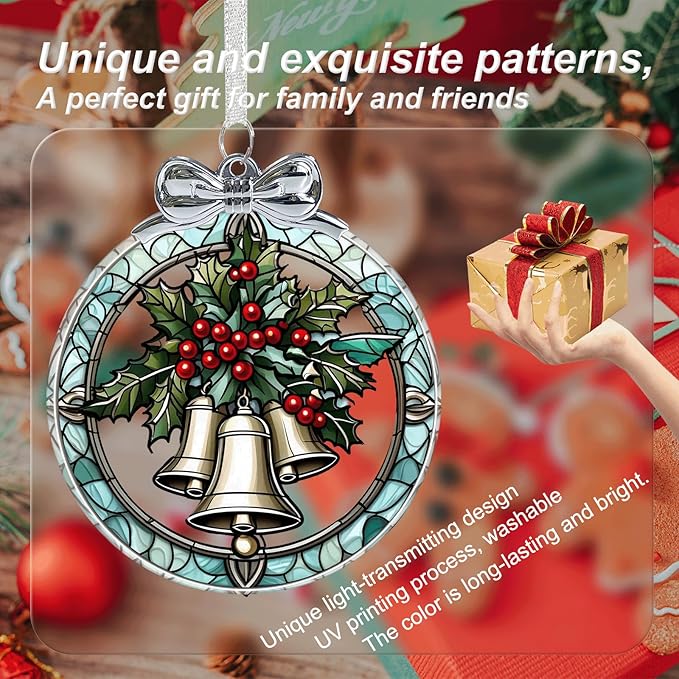 Christmas Bell Stained Glass Ornament - Hanging Ornaments for Christmas Tree, Christmas Ornaments Xmas Decorations, Holiday Keepsake Present Exchange Ideas
