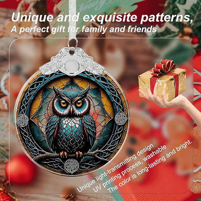 Owl Stained Glass Ornament - Hanging Ornaments for Christmas Tree, Christmas Ornaments Xmas Decorations, Holiday Keepsake Present Exchange Ideas