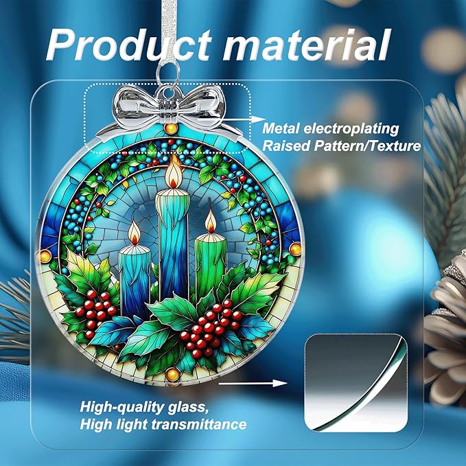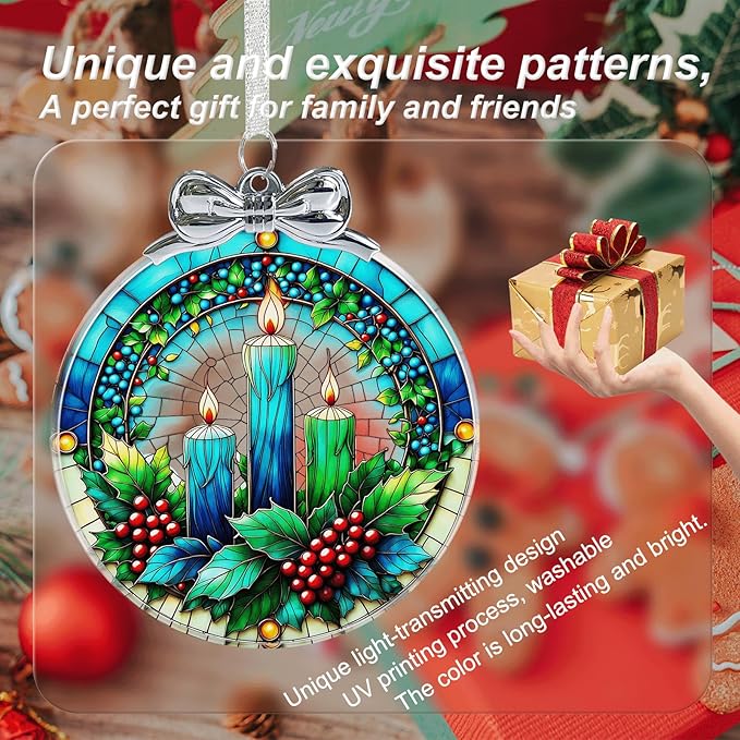 Christmas Candle Stained Glass Ornament - Hanging Ornaments for Christmas Tree, Christmas Ornaments Xmas Decorations, Holiday Keepsake Present Exchange Ideas