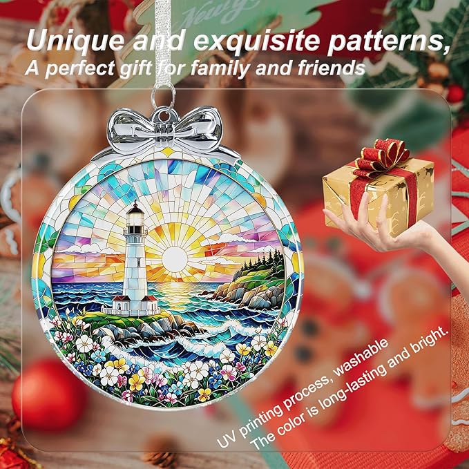 Lighthouse Ornament Crystal Glass with Gift Box- Lighthouse Gifts for Women- Hanging Ornaments for Christmas Tree Xmas Decorations, Holiday Keepsake Present Exchange Ideas