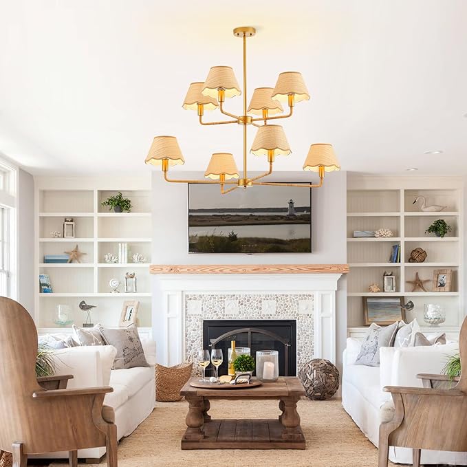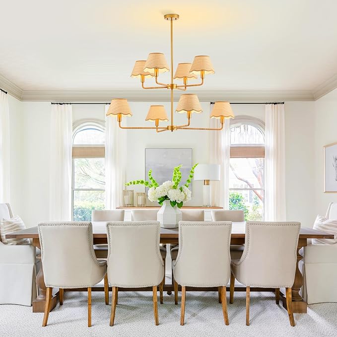 2-Layers Boho Rattan Chandelier 8-Lights Rustic Industrial Pendant Light Large Adjustable Pendant Lighting Fixtures for Kitchen Island Dining Living Room, Dia 41”, UL Listed