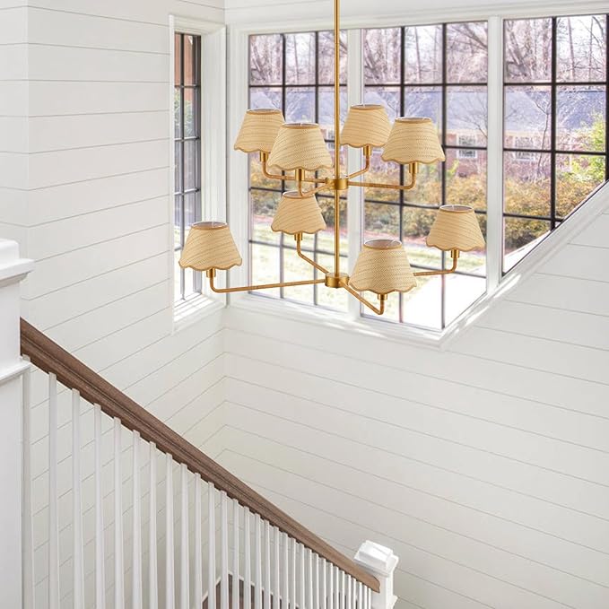 - E12 Dimmable Socket: This hand woven rattan chandelier accommodates 8 x E12 bulbs (40w max, bulbs not included); compatible with LED, incandescent, compact fluorescent, halogen bulbs, etc. It could be dimmable with compatible dimmable bulbs and switch; You could install with warm white, neutral white or cool white bulbs as you like;
