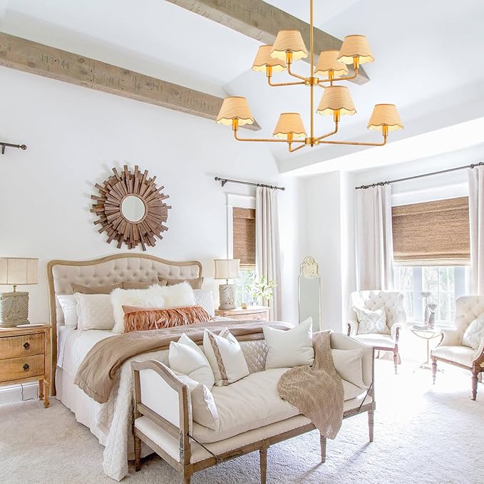 - WHY CHOOSE US: Handmade boho chandelier featuring real natural rattan ---- both shade and wrapped arms, no plastic/paper artificial rattan with yellow or brown color like others here; Features seamless brass-finished rod (no chains/exposed wires), nice brass (no green tint) and natural rattan color, and exquisite craftsmanship. Quality worth every penny—see the difference!