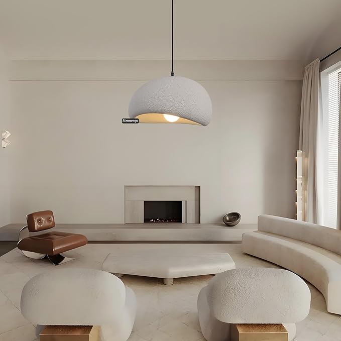 - DESIGN: Modern Japanese Wabi Sabi pendant light featuring an elegant white high-density polystyrene lampshade with minimalist aesthetics