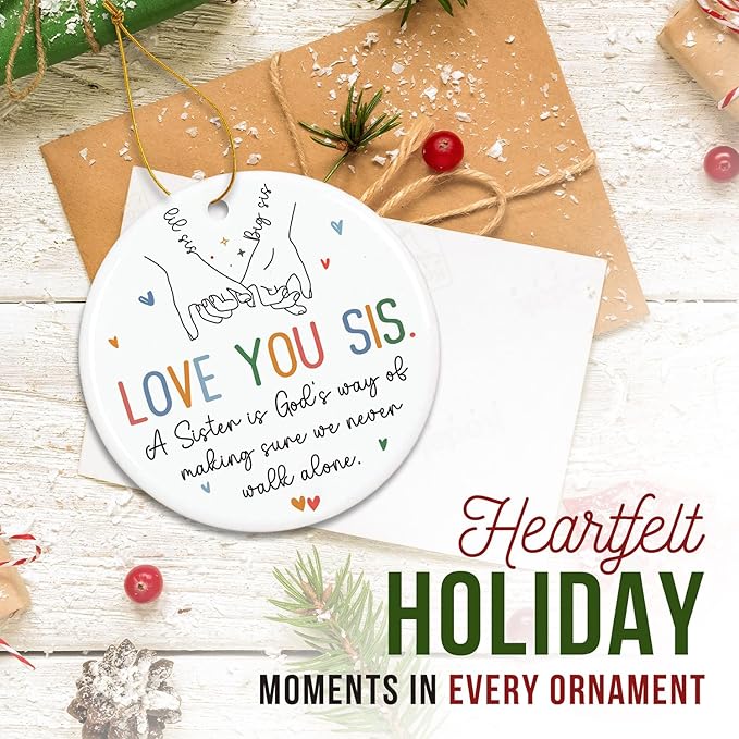 - SISTERS CHRISTMAS ORNAMENT: Celebrate the unbreakable bond of sisterhood with this touching ornament. Featuring a sweet message and pinky promise design, it’s a heartfelt reminder that sisters are always there, making it a meaningful holiday keepsake. Suitable as sister christian gifts for women, sister christmas gifts, christmas gifts for sister in law, gifts for sisters from sisters adult