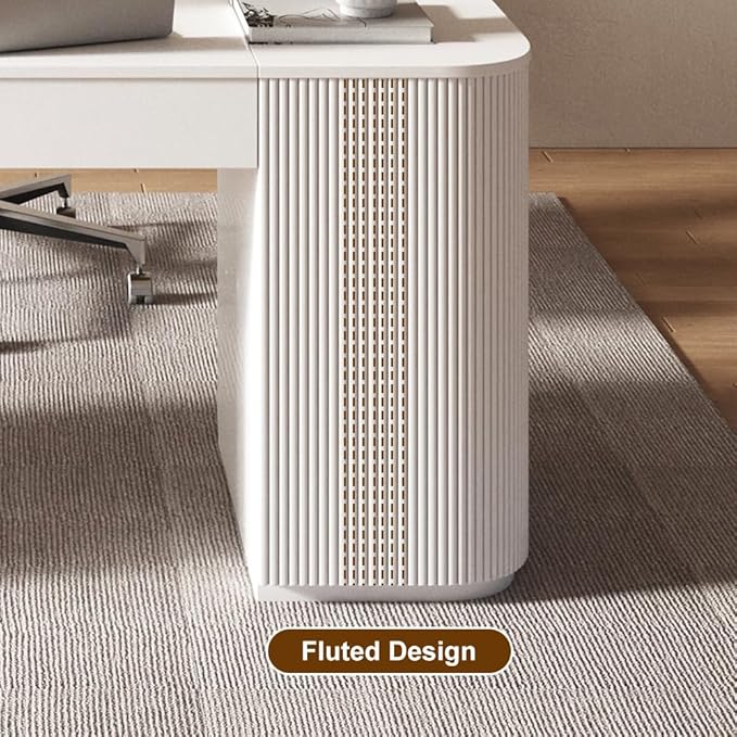 - Modern Fluted Panel Design:Adds contemporary elegance to your home office. Crafted with sleek fluted panels and a clean white finish, this desk brings modern aesthetics to your workspace. Its vertical texture and timeless silhouette elevate any home office furniture setup.