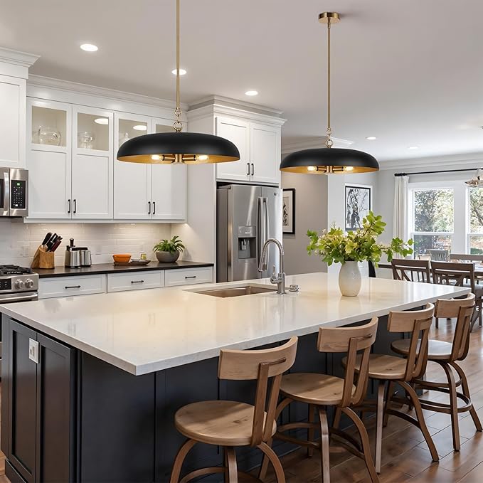 - Oversized & Extra Wide — Features a 20 inch wide, shallow dome shade, making it a focal point in any space that eliminates the cramped feel of small pendant lights; ideal for single hanging above a 4-6ft breakfast nook or round dining table, or in sets of 2-3 over rectangular table, large kitchen island, and bar counter; also perfect for living room, foyer, entryway, hallway, bedroom, and commercial space like cafe, restaurant, bar, and hotel
