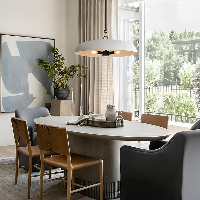- Oversized & Extra Wide — Features a 20 inch wide, shallow dome shade, making it a focal point in any space that eliminates the cramped feel of small pendant lights; ideal for single hanging above a 4-6ft breakfast nook or round dining table, or in sets of 2-3 over rectangular table, large kitchen island, and bar counter; also perfect for living room, foyer, entryway, hallway, bedroom, and commercial space like cafe, restaurant, bar, and hotel
